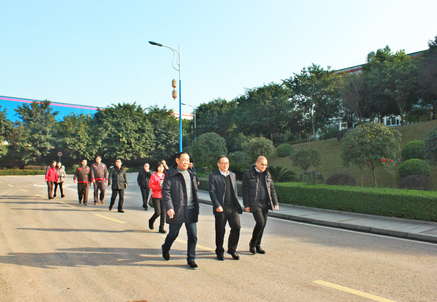 1月10日,大渡口區政府副區長鐘渝,在大渡口建橋公司董事長袁利的陪同下,率區經濟信息委、區政府督查室相關領導,蒞臨勤牛進行專題調研。? ? 鐘副區長駐足勤牛新辦公大樓、深入零部件生產車間和裝配生產線,就工程機械安全